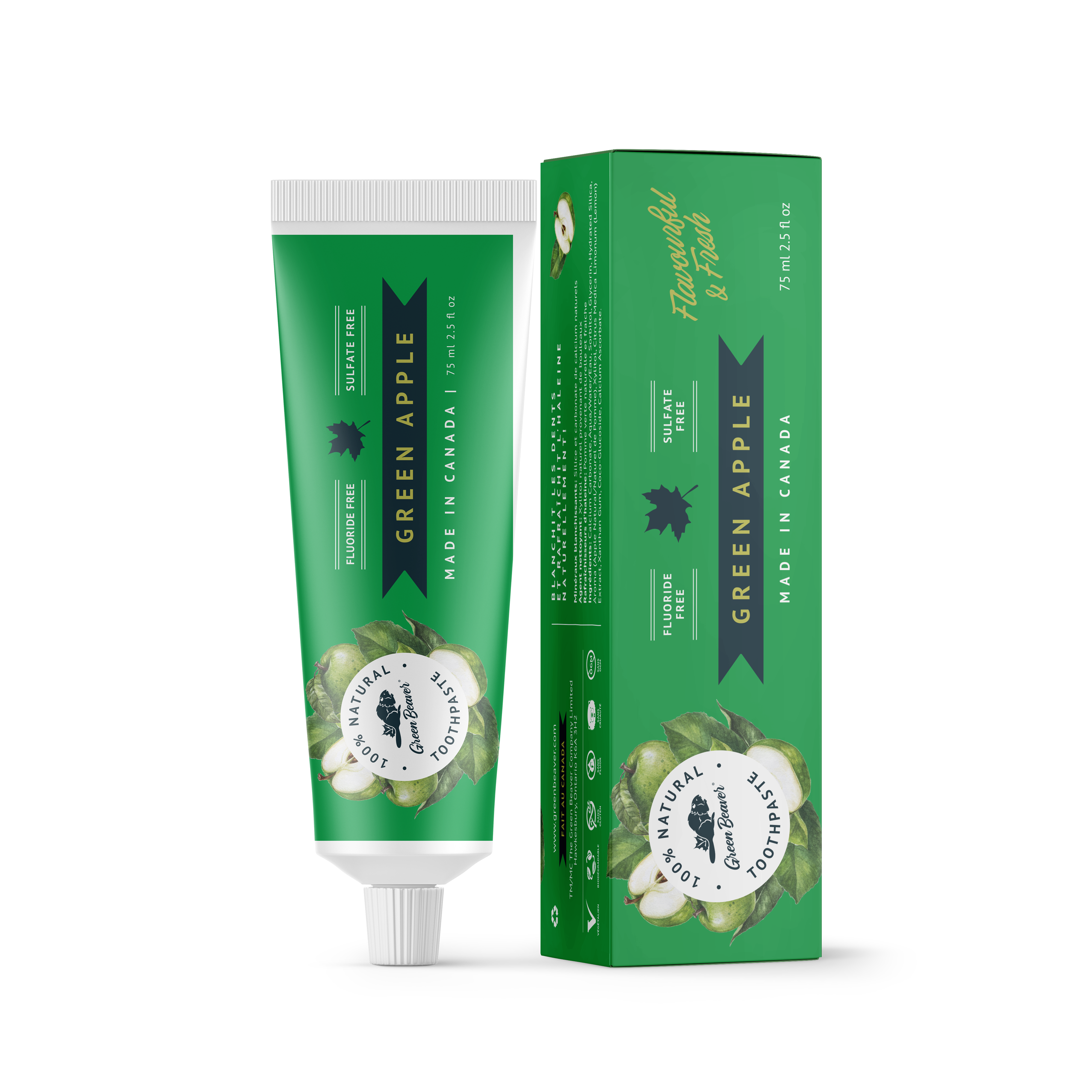 Huiles (canola biologique, coco biologique, tournesol biologique, cire d’abeille), eau, hydroxyde de sodium, huiles essentielles de lime, et de citronnelle, oxyde de chrome (vert) et de fer (jaune).